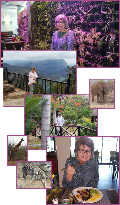 Lynda and I did not buy Christmas presents for each other this year, instead we each paid for the other to take a bit of vacation in South Africa. We visited Kruger Park and had a short safari. It was a blessed and relaxing time, especially after my physical problems. We saw some beautiful places and some beautiful animals. Of course, my Lynda was the prettiest thing there. Always up for some culinary adventure we tried impala, kudu and even banana pizza.