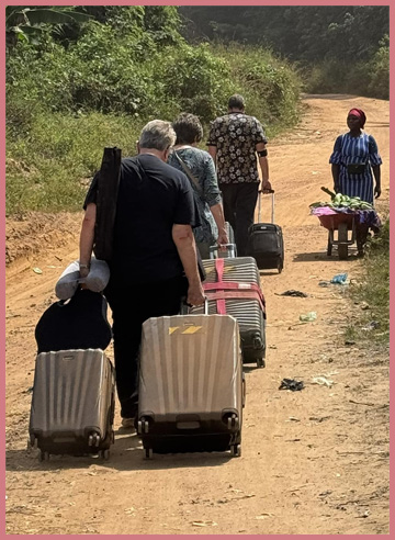 We had to fly into Monrovia, Liberia and drive to Guinea. At the border we had to go through check point after check point. On the way back to Liberia our driver only took us part of the way and we were left to walk a great distance with all our luggage. I had a blister almost as big as a half dollar. The one bright spot of the day was when I showed the border agents Lynda's passport (it was her birthday) and they all broke out in "Happy Birthday." It was certainly a birthday she will remember.