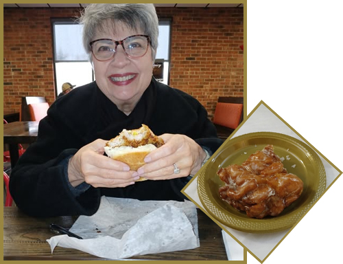 I really enjoy introducing Lynda to places I have enjoyed eating before we were together. I had told her about the tenderloin biscuits at the Burger Shack in Thomasville, North Carolina. I couldn't remember exactly where it was located so I got directions from my dear friend James Dodd. The biscuit was as good as I remembered. I had also told her about this wonderful pastry shop with fritters and cinamon rolls but, alas, again I didn't know where it was located. By the favor of God it was right next door. We both left Thomasville smiling.