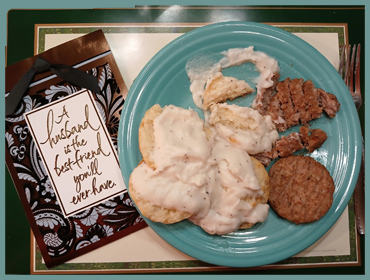 Wow! I am blessed! Sausage, biscuits and gravy are one of my favorite things. What a great Father's Day surprise. I am even more blessed by the sweet wife that prepared them. She loves and cares about my kids and honors me as if I were the father of her's kids. Perfect day. Hope you had a great day too.