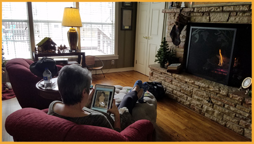 Lynda loves to travel, but she REALLY enjoys being at home. We were so blessed to spend several day at home and to top it off, it came a good snow in Oklahoma. Nothing like resting by a fire and watching it snow.