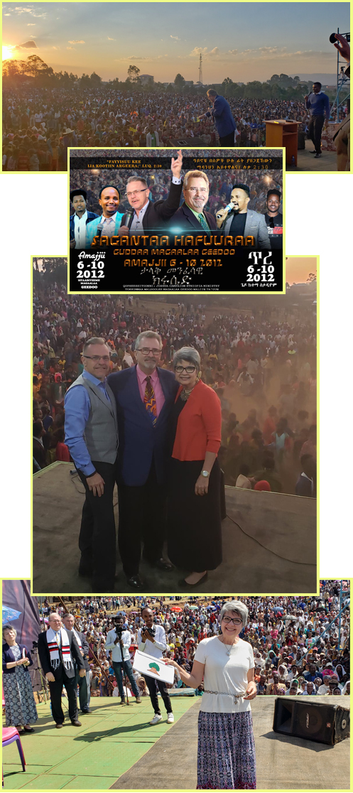What a great campaign! Our Gedo Harvest Revival Crusade is in the history books. As many as 22,000 were gathered on the field. 3600 took salvation booklets. Dozens were healed. Praise God for the privilege to work with the Joshua Campaign in Ethiopia and our American team, Bettina Dorsett, John Sullivan and Dr. Doyle Jones.